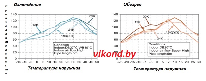 Диапазон рабочих наружных  температур: режим холод -15…+50, режим тепло -25…+30  Эффективное отопление!