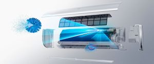Фронтальная панель внутреннего блока с эффектом плиссе создает эффектный матовый дизайн в комбинации с лаконичной строгой формой.