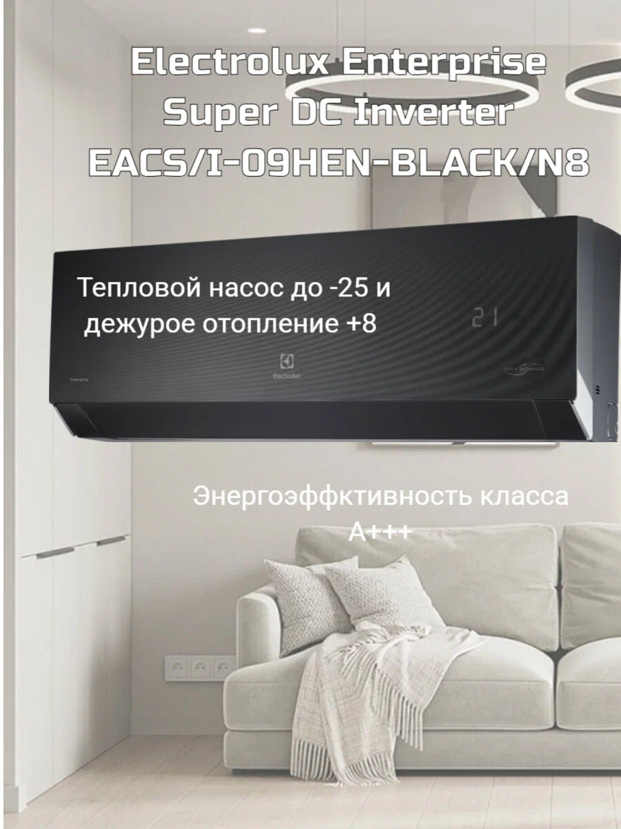 Тепловые насосы (инверторные сплит-системы) Enterprise Black Super DC Inverter – выбор лучшего! Передовые технологии в дизайнерском черно-графитовом исполнении.