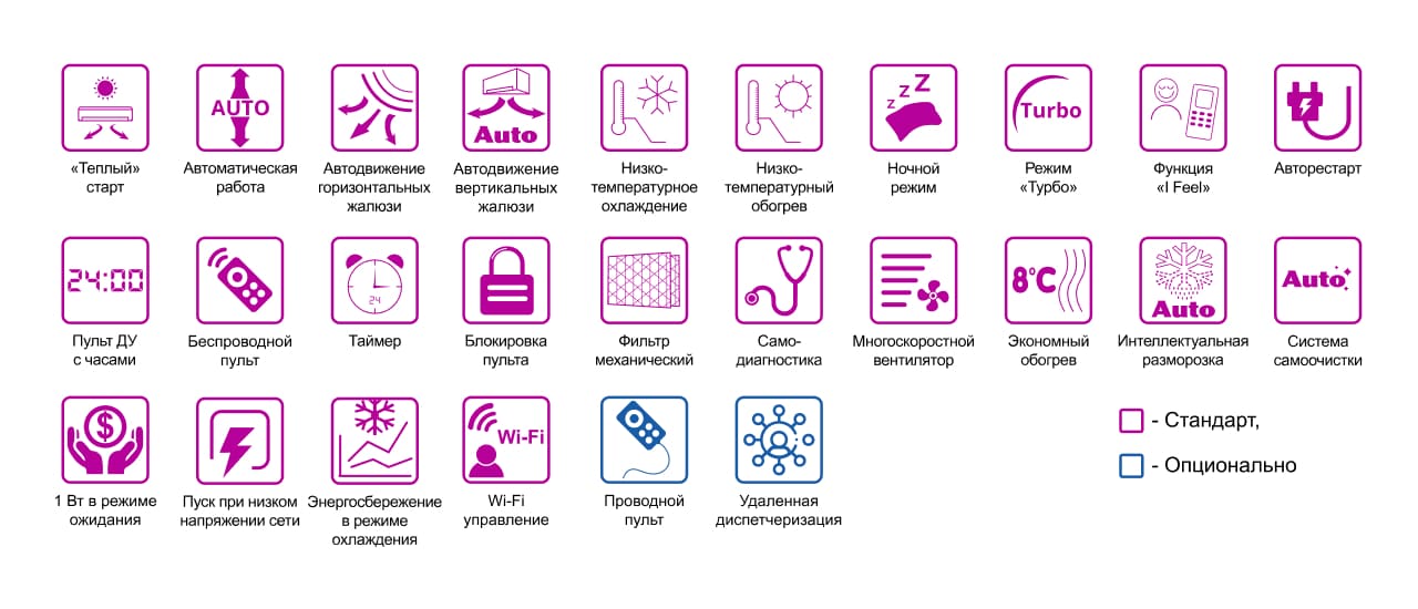 - Самодиагностика — контроль работы кондиционера