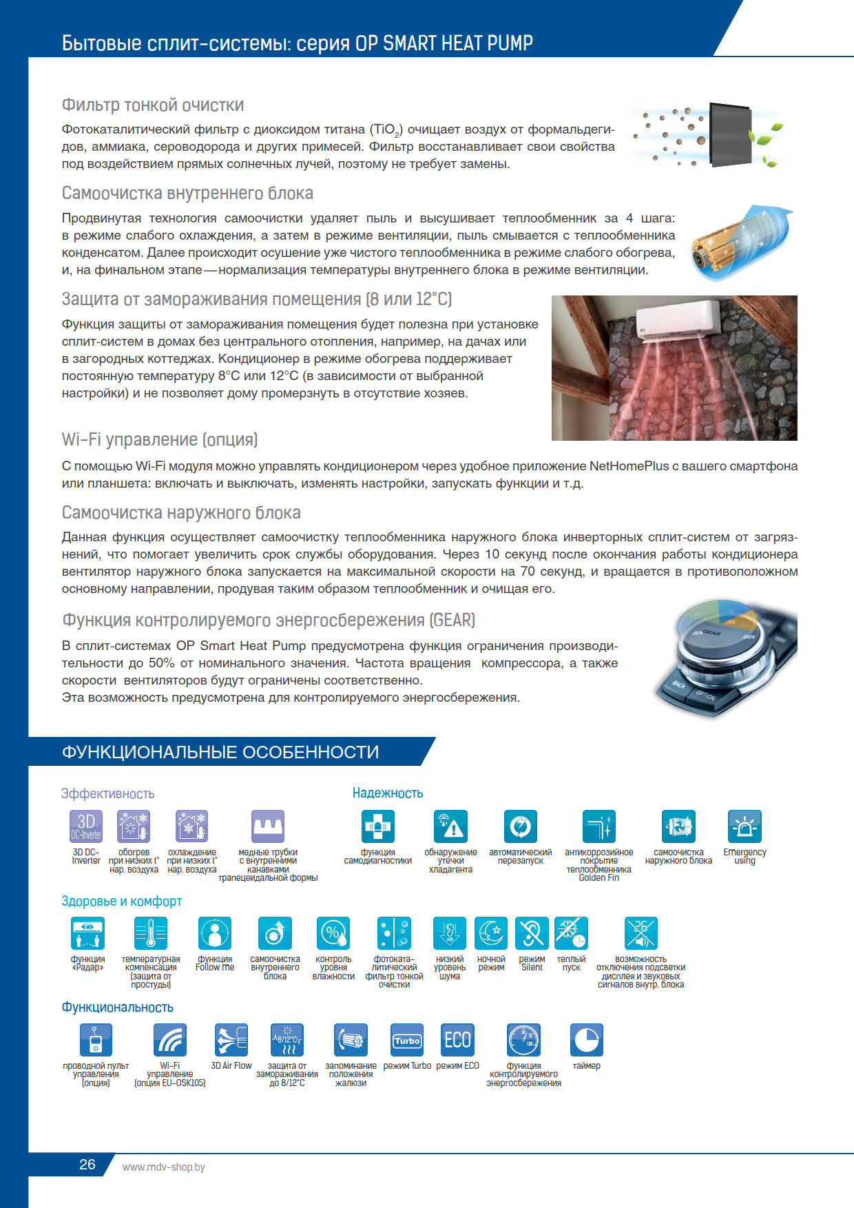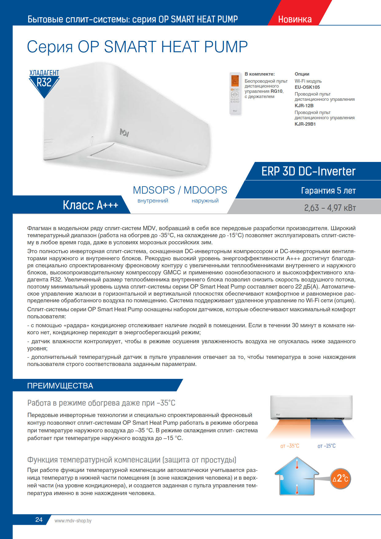 ✓ работа на обогрев до -35°C, на холод -15°C